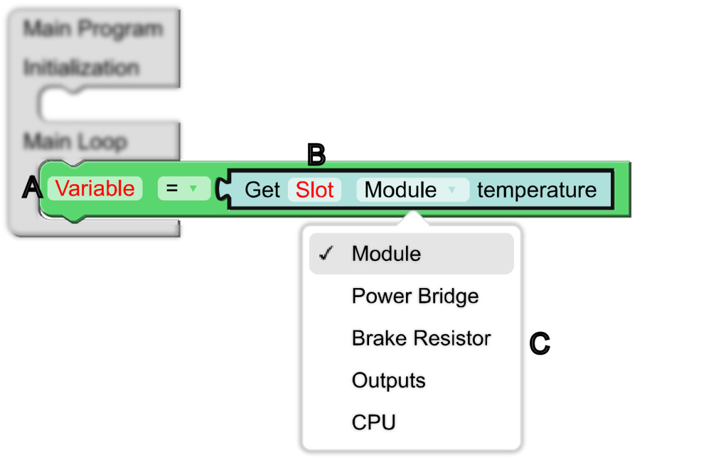 | B | Select the Slot for the particular InoDrive you want to retrieve the temperature information |