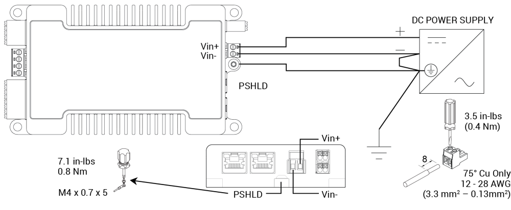 | Input Voltage (V in ) | 12-48 VDC continuous with auto-detection of voltages: ● 12V +/- 10% ● 24V +/- 10% ● 36V +/- 10% ● 48V +/- 10% |